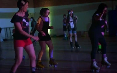 features a costumed roller skate party.