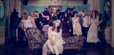 Fri-end? has two videos. The Halloween video features Nash as a vampire who has a Halloween party at her house. The official video features multiple Nashes singing.