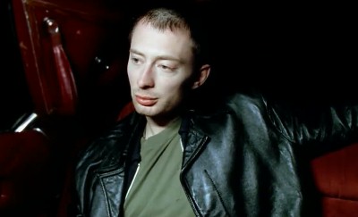 Karma Police features a car pursuing a man along a dark road, with Yorke in the back seat.